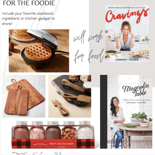 A few years ago I started doing custom themed baskets for gifts. It’s easy, and allows you to customize and create something in your budget. You can splurge on one item and fill the rest of the basket with stocking stuffers, or curate your own deluxe basket with items you know they’ll love. It also shows that you put thought into your gift, and they’ll never know how easy it was to put together!