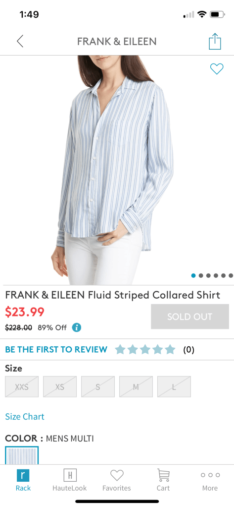 I’m a HUGE fan of Frank & Eileen button downs, but they’re extremely pricey at around $200 a shirt full price. This one was almost 90% off, and such a classic style and print that I would get a ton of use our of. I love wearing them alone, or even layered under a v neck sweater.