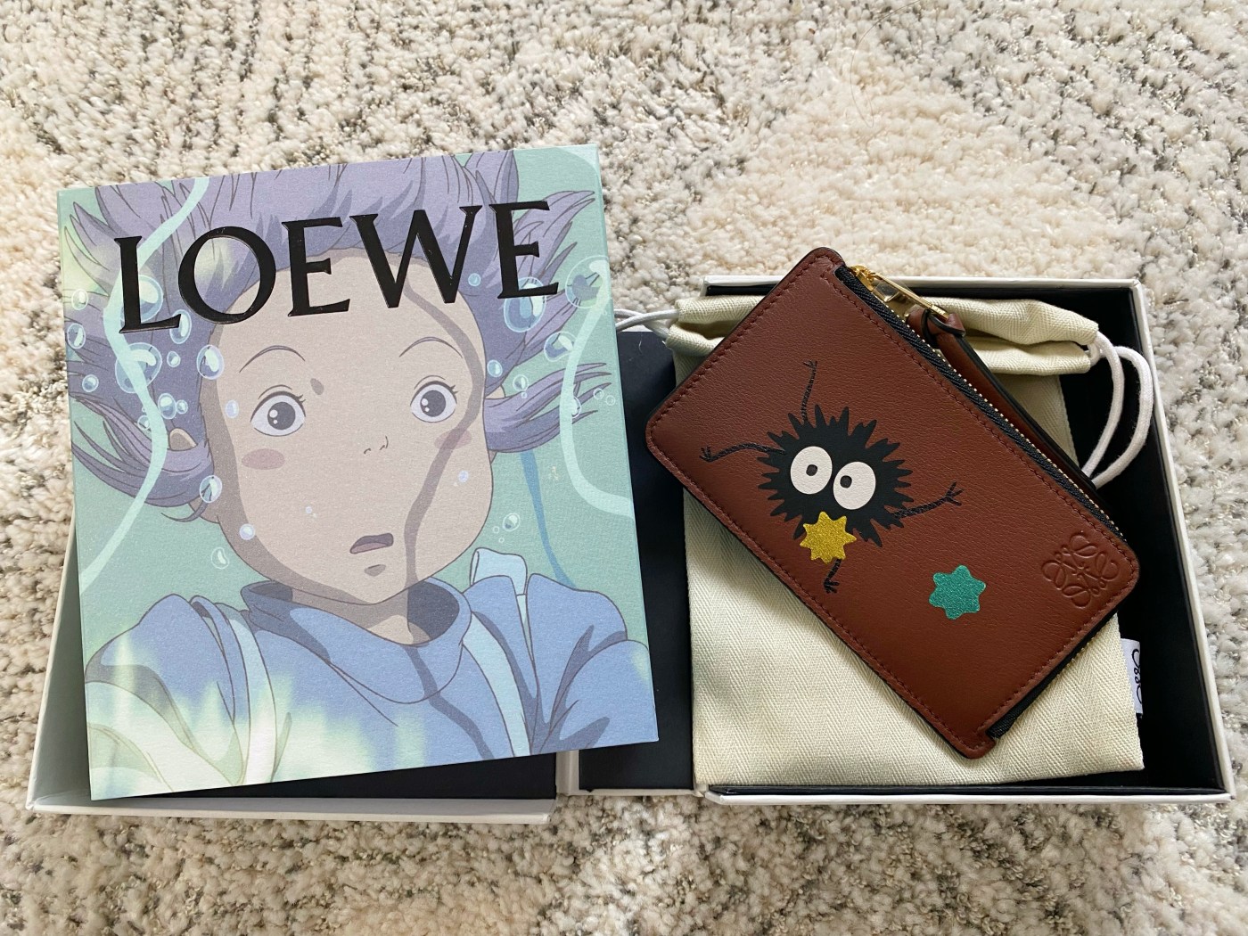 I received my cardholder/wallet within a week of ordering it, and considering it was free shipping AND came directly from Spain, I was thrilled. The packaging was stunning. The box had a cover that was a scene from the movie, something that isn’t available regularly. Everything was true to Loewe style, but with Spirited Away imagery, which made it feel so special. The cardholder exceeded my expectations as well. I’ve seen them in store before and I thought it’s the perfect size and has a zipper compartment which I love, but the surprise was the details on the wallet that were not visible online. The candies (compeito) that are featured on the wallet are metallic, which adds such a fun and playful touch! Inside the wallet was a pop of color, and featured the Ghibli logo Totoro.