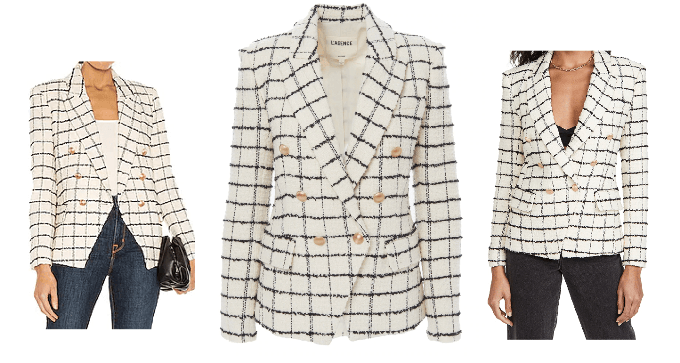 If you go through any of my previous blog posts, you know I love a good blazer. They’re easy to add on top of a t-shirt, and make you look more put together in an instant. One of the brands that does blazers like no other is L’Agence. Between the fit, the details, the fabrics, their blazers are stunning and a work of art. They are also pricey. Depending on the style or fabric, they can be priced anywhere from $425 to up to $1395 for leather or suede.