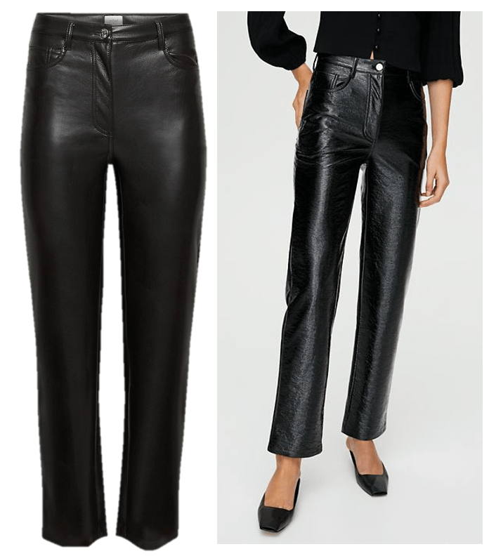 They have a high rise fit, and a straight leg, so they are extremely flattering. They are also the most buttery, soft material that doesn’t feel cheap or plasticky like other vegan leather fabrics can. They have a bit of stretch to them so they’re extremely comfortable to wear. The length was perfect on me to wear either sneakers or heels so I can wear them to work with a blouse, or on the weekend with a t shirt or sweatshirt. They’re so much more versatile than I thought, and something I didn’t know was missing from my wardrobe.